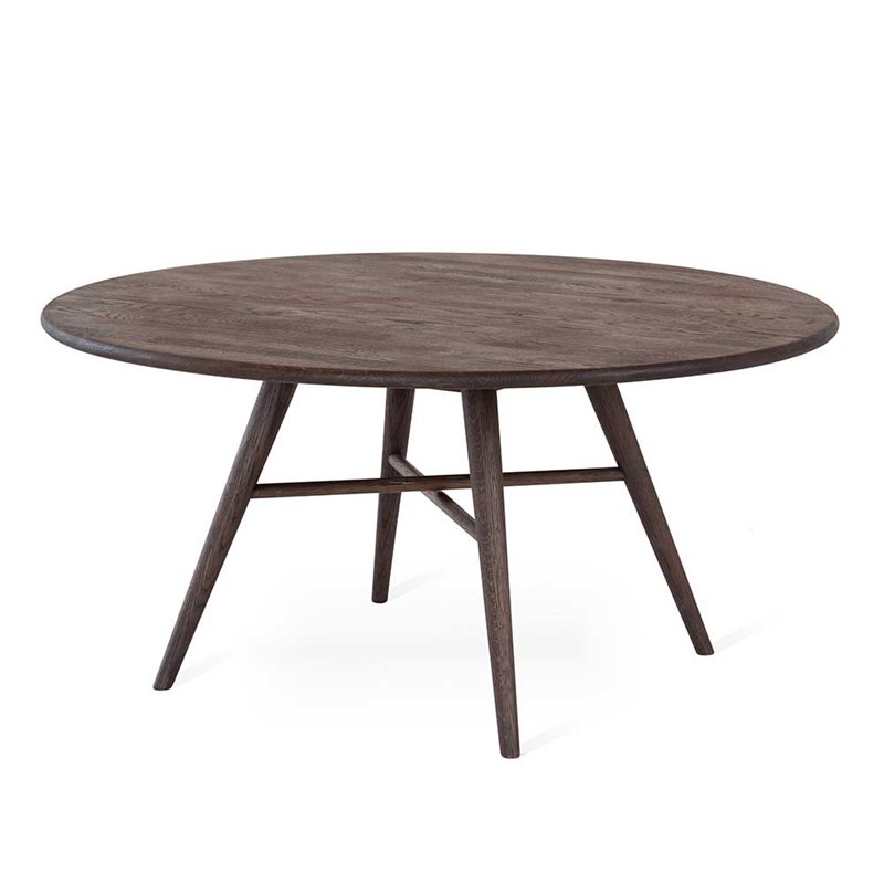 Soffbord Löderup, ett runt soffbord från Torkelson. Ett stilrent bord i trendig rökoljad finish. Bordskivans rundade kanter och de svarvade benen ger Löderup soffbord en mjuk och följsam design.